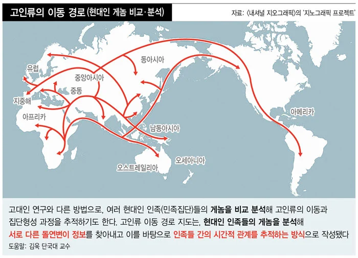 사진 2. 고 인류의 이동경로, 출처:http://scienceon.hani.co.kr/491902
