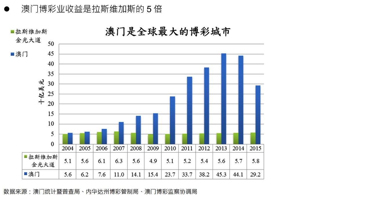 1997년에 중국에 귀환 된 후 무역 지위가 상하이와 싱가포르 등에 밀린 홍콩과는 달리, 1999년 마카오는 중국에 귀환된 후 그 발전에 가속도가 붙게 되어 미국의 라스베가스와의 차이를 점점 벌려 놓게 되면서 현재 마카오 카지노산업 수익이 라스베가스의 5배로 된다.