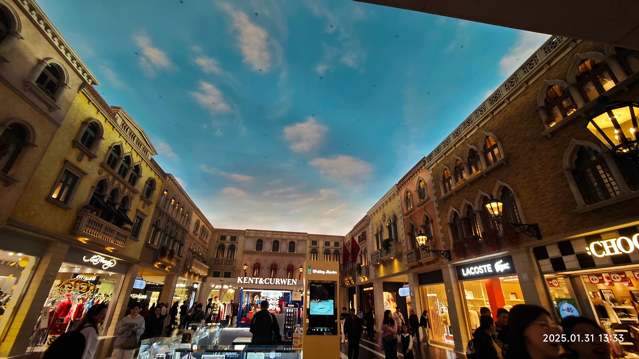 베네치아풍으로 장식되어 있으며, 천정을 수놓은 푸른 하늘과 뭉게구름은 진짜처럼 생생하게 움직인다고 한다. 이외 인공으로 만든 맑은 강 위로 곤돌라가 유유히 떠다니고 가끔 손님들의 요청에 의해 곤돌리에들이 부르는 세레나데도 들을 수 있다고 한다.