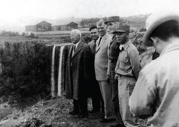 사진에서 서 있는 위치로 보았을 때는 이승만 그리고 기타 수행원들이 바다 위를 바라보면서 웃고 있는 모습이다. 정용성 화백의 그림이 그 웃음 그리고 그때 당시 화면을 완벽하게 재현하였다.
