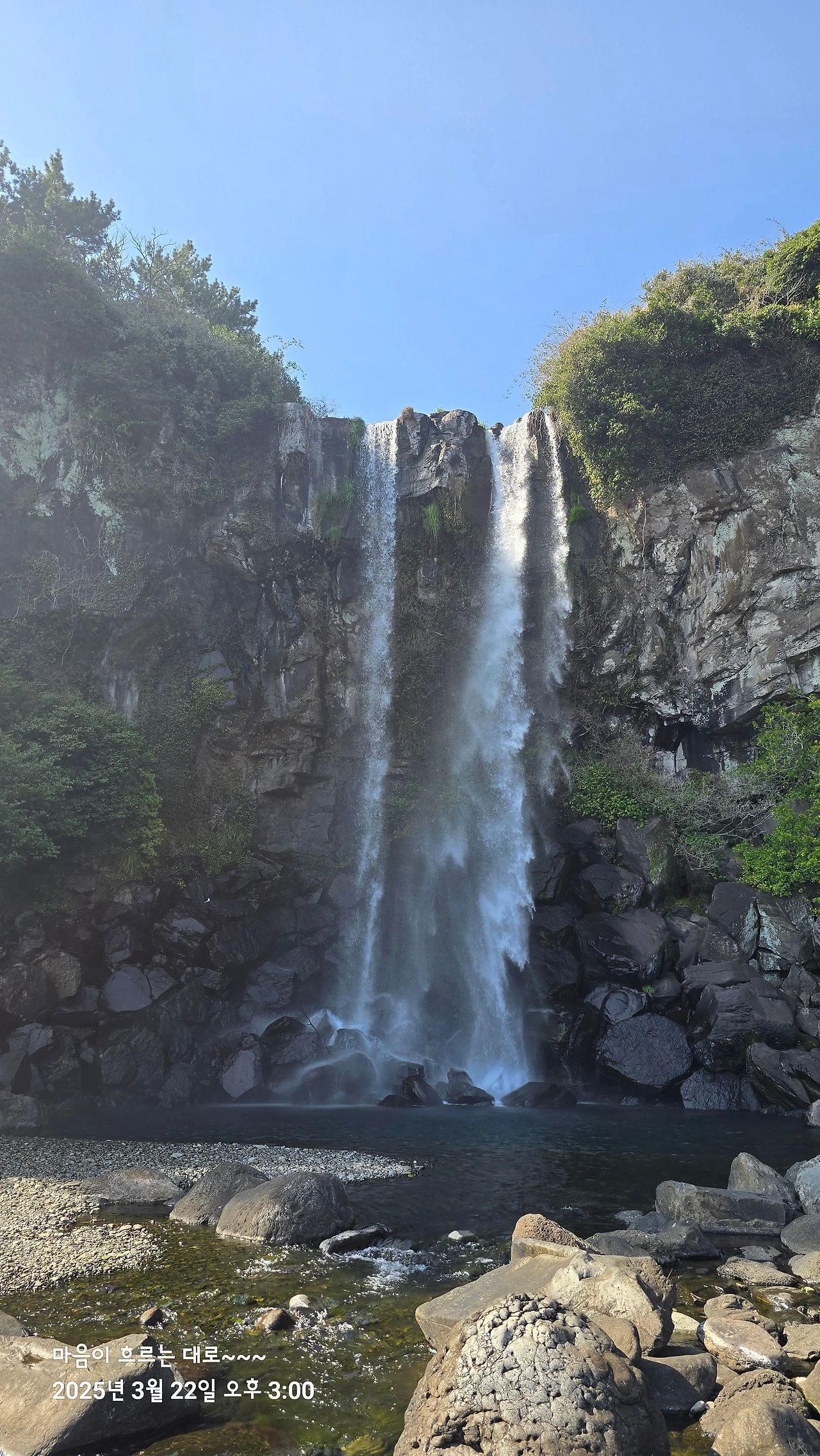 매화꽃과 유채 꽃이 여기저기 아담하게 핀 칠십리공원을 산책하다가 문뜩 며칠 전 도립공원에서 본 정방폭포를 그린 그림을 보고 충격받았던 생각이 나서 정방폭포를 찾았다.