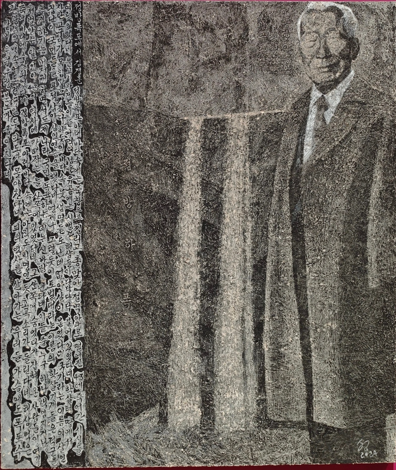 죽음을 상징하는 검은색 바탕에 한국 초대대통령인 이승만 입가에 조소 섞인 웃음 같기도 하고 헛웃음 같기도 한 것이 보여서 혹시나 하는 마음에 사진을 찾아보았다.