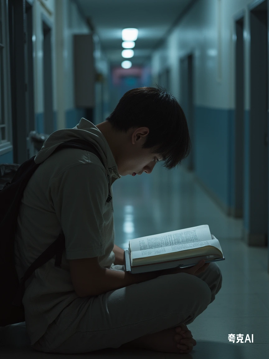 심야열독(深夜夜讀): 경비아저씨의 발걸음소리가 멀어지면 벌떡 일어나 우선 커튼(窗帘)을 쳐서 빛이 새 나가는 것을 방지한다. 본 건물 순찰이 끝나면 교정 밖도 순찰하기 때문이다.