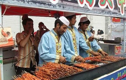 이때 신강 위구르족 사람들이 타지에서 터를 잡게 해 준 것이 길거리 음식인 양꼬치이다. 시장경제의 훈풍을 타고 80년대부터 위구르족 사람들이 중국의 크고 작은 도시들에서 양꼬치를 굽기 시작했다.
