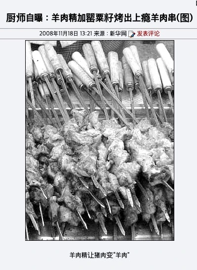2008년 11월 18일 신화통신사 기사, 조미료로 뿌려 돼지고기를 “양고기”로 변신
