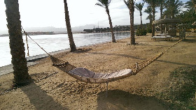 두 개의 나무 혹은 기둥 사이에 달아매는 그물 침대. 해먹이라고 하죠?