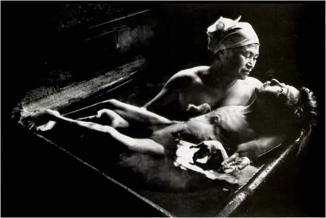 그 집으로 가서 나는 매우 힘겹게 설명했다. 그러자 그녀는 "네 도모꼬를 목욕시킬 참이었어요. 이것이 도움이 될지 모르겠군요."라고 말하고는 일본인이 흔히 하는 것처럼 먼저 욕조 밖에서 그 아이를 안고 씻긴 다음 욕조 안으로 들어가는 거였다. 매우 감동적이었다. 눈물이 나올 만큼 감동적인 사진을 찍는다는 것은 매우 어렵다. 그러나 나는 해냈으며 그것은 충분히 낭만적이다.