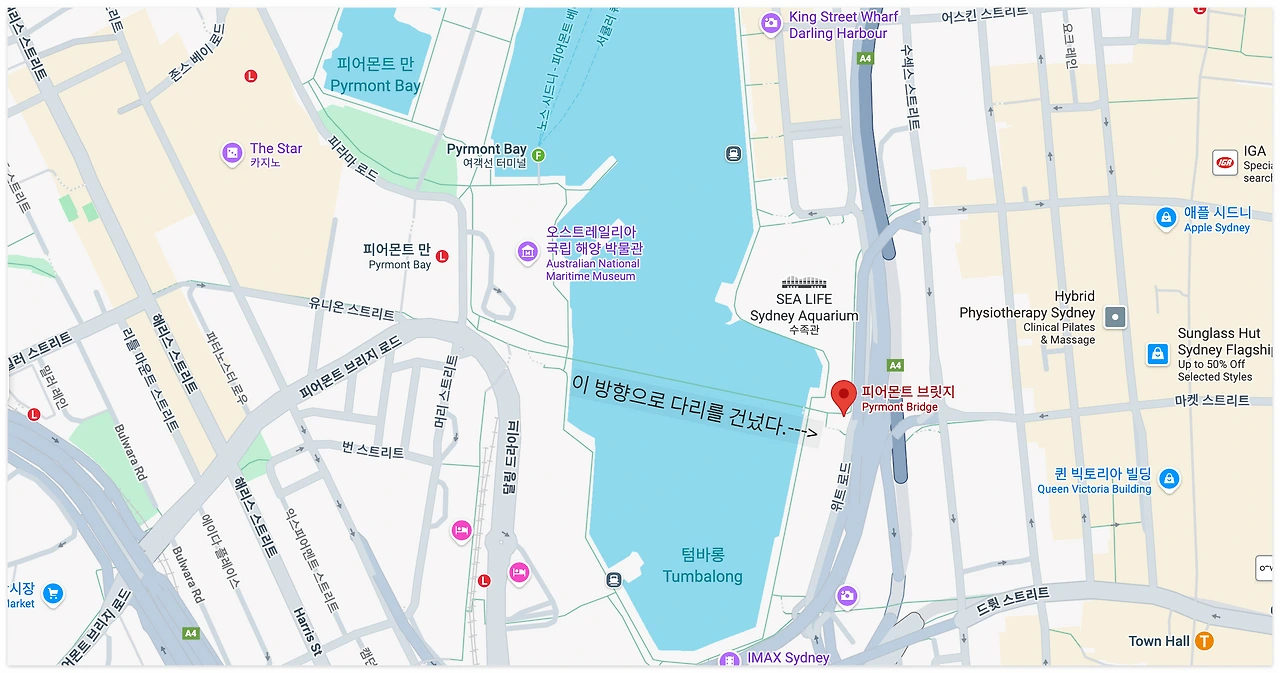 시드니 해양방물관을 넘어섰다.