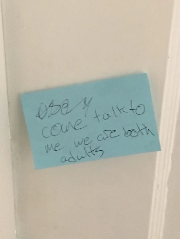 최악의 상황은 지금부터입니다. 그가 제 밥솥을 사용하는 것도 모자라 제 쌀에(감히 한국인의 쌀을) 손을 댄 거죠. 그 사실을 알게 된 저는 화를 참지 못하고 혼자 손을 떨어가며 어떻게 하면 효과적으로 내 의사를 잘 전달할 수 있을까 고민했습니다. 결과는 ‘쪽지’를 쓰자고 결심했습니다. 아무래도 그 상황을 발견한 직후에 찾아가서 얘기를 하면 감정적으로 밖에 얘기할 수 없을 것 같았고, 무엇보다 영어로 그를 이길 자신이 없었습니다. 화를 식힌 후 책상에 앉아 차근차근 제가 하고 싶은 말을 적었고 그의 방문에 붙였습니다. 저는 당연히 O가 쪽지를 읽고 제 방으로 찾아와 사과할 줄 알았어요. 하지만 결과는 빗나갔습니다. 완전히 말이죠. 제방으로 찾아오는 대신 제가 쓴 쪽지 뒷면에 대충 휘갈겨 쓴 글씨로 ‘Come talk to me. We are both adults’라고 적어 놓았습니다.