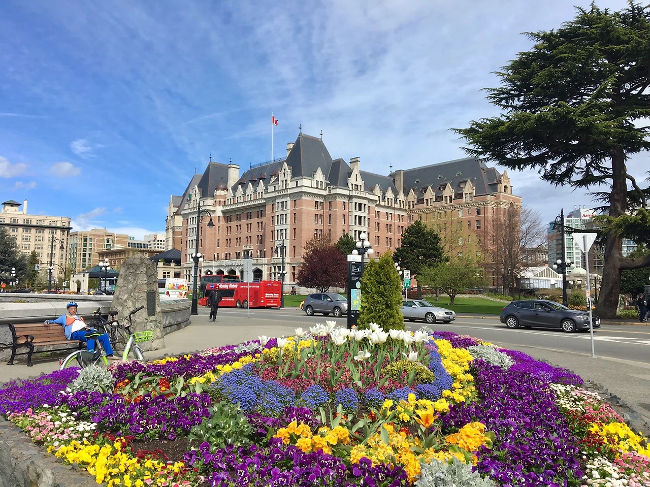 두 번째 공통점은 아름답다는 것입니다. 부산의 유명 관광지인 광안리, 해운대, 감천 문화마을을 비롯해 제가 찾은 숨겨진 아름다운 곳 다대포 해수욕장과 황령산 봉수대 등 부산은 정말 아름다운 곳이 많은 도시입니다. 그리고 빅토리아 또한 정말 아름다운 도시고요. 빅토리아는 별명이 참 많은 도시인데, 그중 하나가 바로 ‘꽃의 도시’입니다. 도시는 어딜 가나 형형색색의 꽃으로 가득하고. 특히 흔히 이너하버라고 불리는 올드타운으로 가면 웅장한 주 의회 의사당 건물과 The Empress호텔을 중심으로 아름다움의 끝을 경험할 수 있습니다. 그리고 두 번째 ‘캐나다의 영국’이라는 별명입니다. 도시의 이름에서 알 수 있듯 빅토리아는 영국적인 색채가 아주 강한 도시입니다. 주 의회 의사당 건물 앞엔 영국 빅토리아 여왕의 동상이 우뚝 서있고, 도시의 건물들은 빅토리아 시대풍의 건물들이 상당히 많습니다. 영국의 상징이라고도 할 수 있는 빨간 2층 버스가 도시 곳곳을 누비며 관광객들의 눈을 홀리기도 합니다. 캐나다의 프랑스가 ‘퀘벡’이라면 캐나다의 영국은 단연 ‘빅토리아’라고 할 수 있을 것입니다.