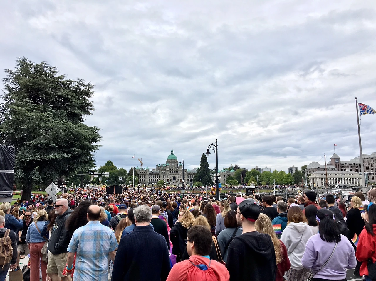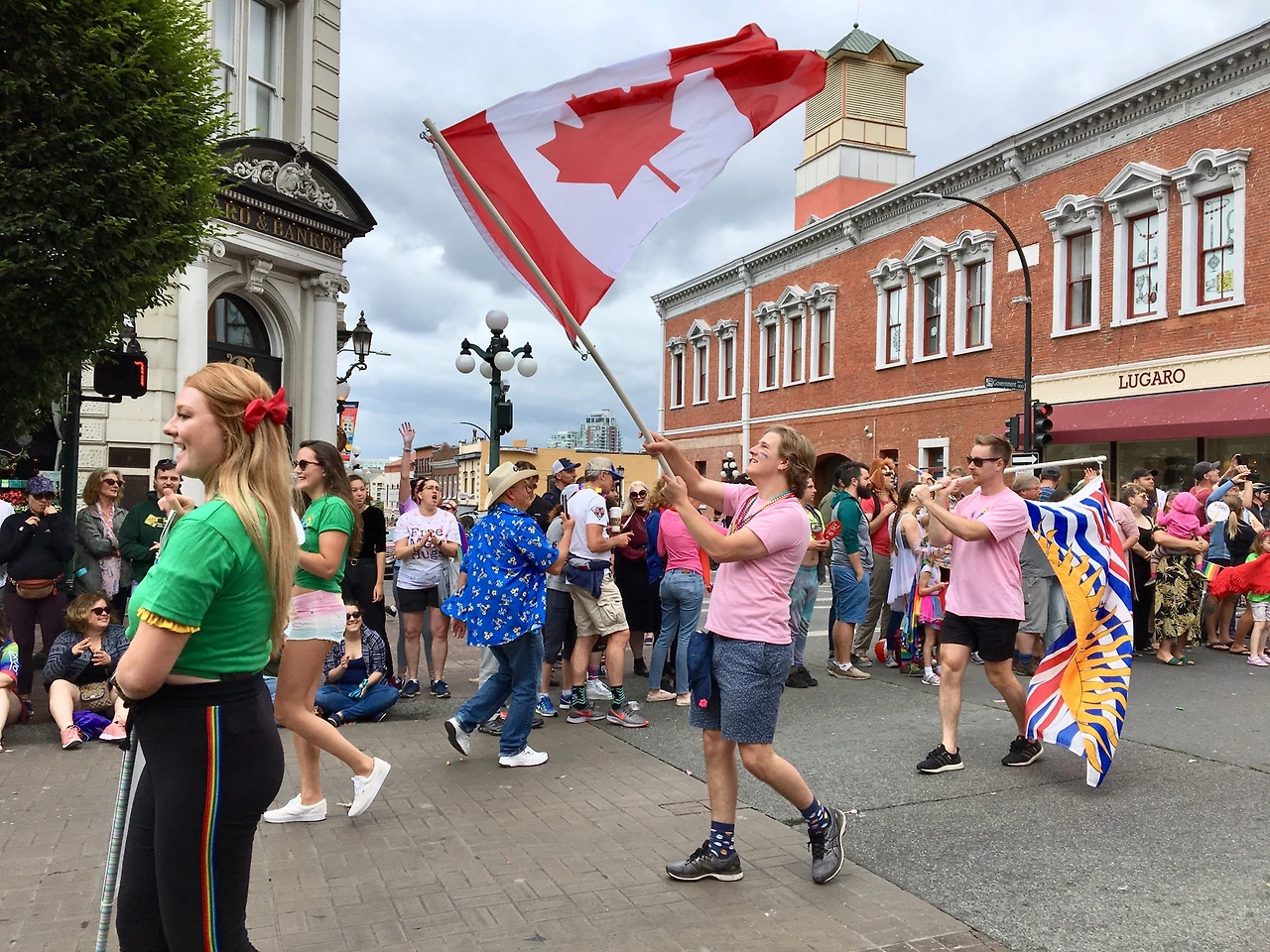 퍼레이드의 피날레는 가장 마지막 팀의 행진 뒤에 길 양쪽에 있던 수많은 시민들이 그들을 따라 함께 종착지까지 가는 장면입니다. 어느덧 도로는 사람들로 빽빽이 채워지고 ‘발 디딜 틈이 없다.’라는 말을 새삼 실감케 합니다. 빅토리아 여왕의 생일을 기념하는 빅토리아 데이, 캐나다의 건국 기념일인 캐나다 데이를 모두 지켜본 저는 이렇게 많은 사람들을 본 적이 없었습니다. 평소엔 차 클랙슨 소리 조차 들리지 않는 조용하고 평화로운 이 곳에 '이렇게 많은 사람들이 살고 있었나' 하는 의문이 드는 시간이었죠. 그만큼 캐나다 사람들에게 이날은 특별한 날인 듯합니다.