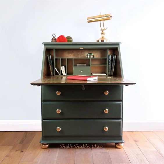 평소에는 평범한 캐비닛인 듯한데 상판 손잡이를 잡아당기면 책상이 되는 드롭 리드 테이블(drop lid table)이 사고 싶어 졌다.