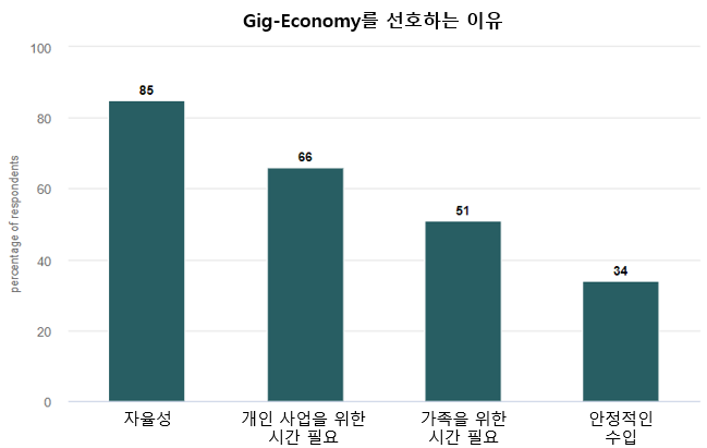 글로벌 인력 솔루션 기업 맨파워그룹이 실시한 '베트남인이 원하는 일의 형태' 설문조사에 따르면 거의 모든 분야에서 18~65세 구직자의 87%가 긱워크(예: 그랩 드라이버), 프로젝트 작업 및 아르바이트를 원한다고 응답했다. 이 숫자는 글로벌 평균보다 2배나 높다. 이는 이머징 마켓의 특성이기도 하지만, 베트남 사람들은 자율적인 특성과 함께 다른 사업을 위한 시간과 가족을 위한 시간을 확보하기 위해서 유연하게 일하는 것을 선호하는 것으로 드러났다.