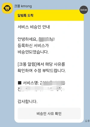 서비스 등록은 크몽에서 요구하는 대로 5단계에 걸쳐 상세페이지를 작성하고, 가격을 설정하고, 이미지도 넣으면 된다. 그렇게 하라는 대로 다했는데 이게 뭔가. 설렘 가득한 마음으로 며칠을 기다린 뒤 맞이한 건, 서비스 비승인 소식이었다. 결론부터 말해 이 메시지를 3번이나 더 보게 된 이유는 서비스의 단가를 낮게 설정했기 때문이었다.