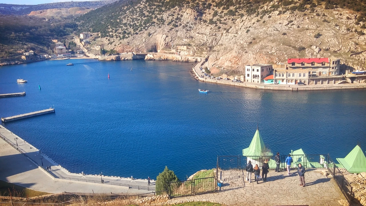 평화롭기만 해 보이는 이 곳은 한 때는 핵잠수함이 정박하며 출정 준비 및 수리를 하던 곳이었으며 철저하게 군사 기밀 지역이었다. 적의 위성망을 피하기 위하여 산속에 터널을 뚫어서 그곳에 위치하였으며 핵폭탄에도 견딜 수 있도록 설계가 되어있다고 한다. 2차 세계 대전 끝날 무렵 마지막 잠수함이 출정한 뒤에 근래에 와서야 이 지역을 개방하고 관광객들을 받기 시작하였다고 한다. 크림반도의 주요 관광지 중에 하나로 주목받고 있는 지역이겠다. 나중에 시간이 나면 하루쯤 이곳에만 머물면서 커피와 맥주를 벗 삼아 하루를 보내보고 싶을 정도로 신선하고 편안한 느낌을 받았다. 귀국 전에 일요일이 한번 더 남아있으니 한 번 고려해볼 만하겠다. 여유롭게 항구를 따라서 산책을 하고 망루가 자리 잡고 있던 산에 올라가 전체적인 경치를 감상해본다.