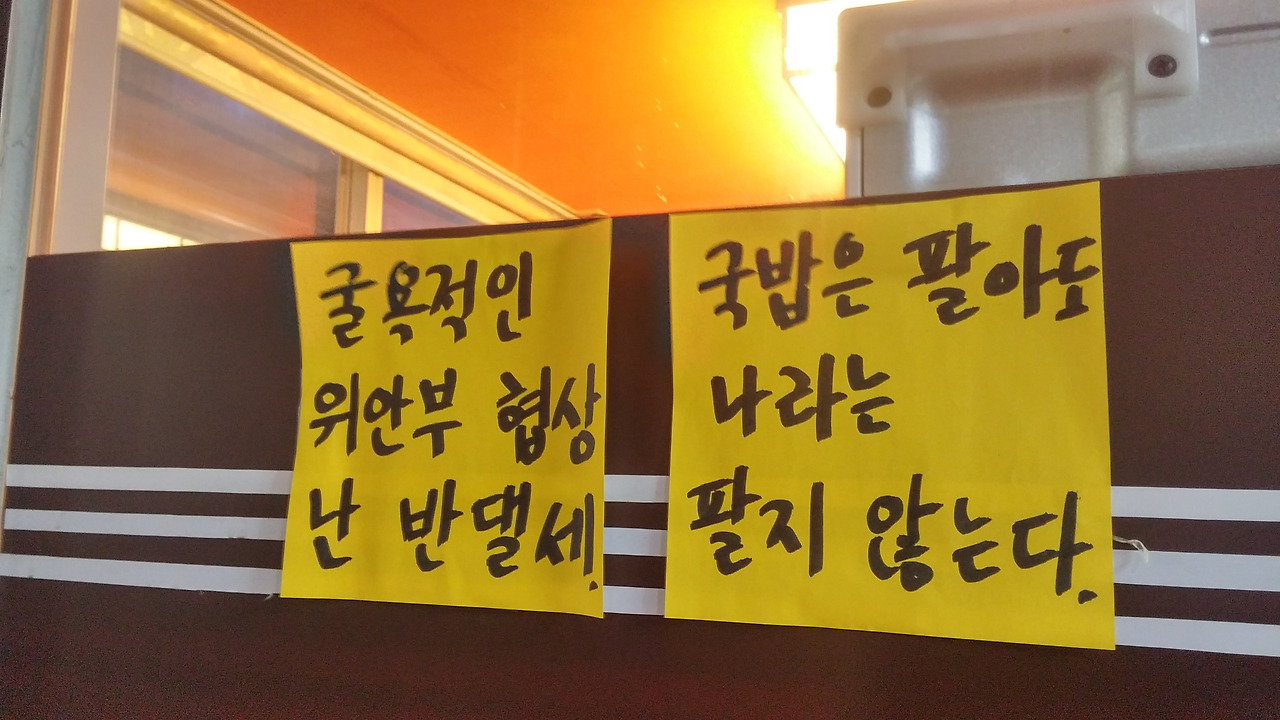 정부가 멋대로 일본과 위안부 문제를 단정 지어버리는 어처구니없는 일을 벌이고 역사책을 좌지우지하려고 하는 이러한 시대 정세에 직구를 던지고 있던 한 객주이다. 시간만 좀 어두웠더라면 이곳에 들어가서 기쁜 마음으로 막걸리 주전자 한 사발을 시켜서 주인과 정세를 논해보았겠으나 백두 대낮이라 아쉬운 부분이다. 하지만 훗날 저곳은 내가 꼭 가보리다. 주인 얼굴은 보지 못했으나 내가 다 시원하더라...