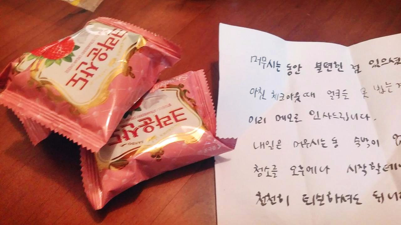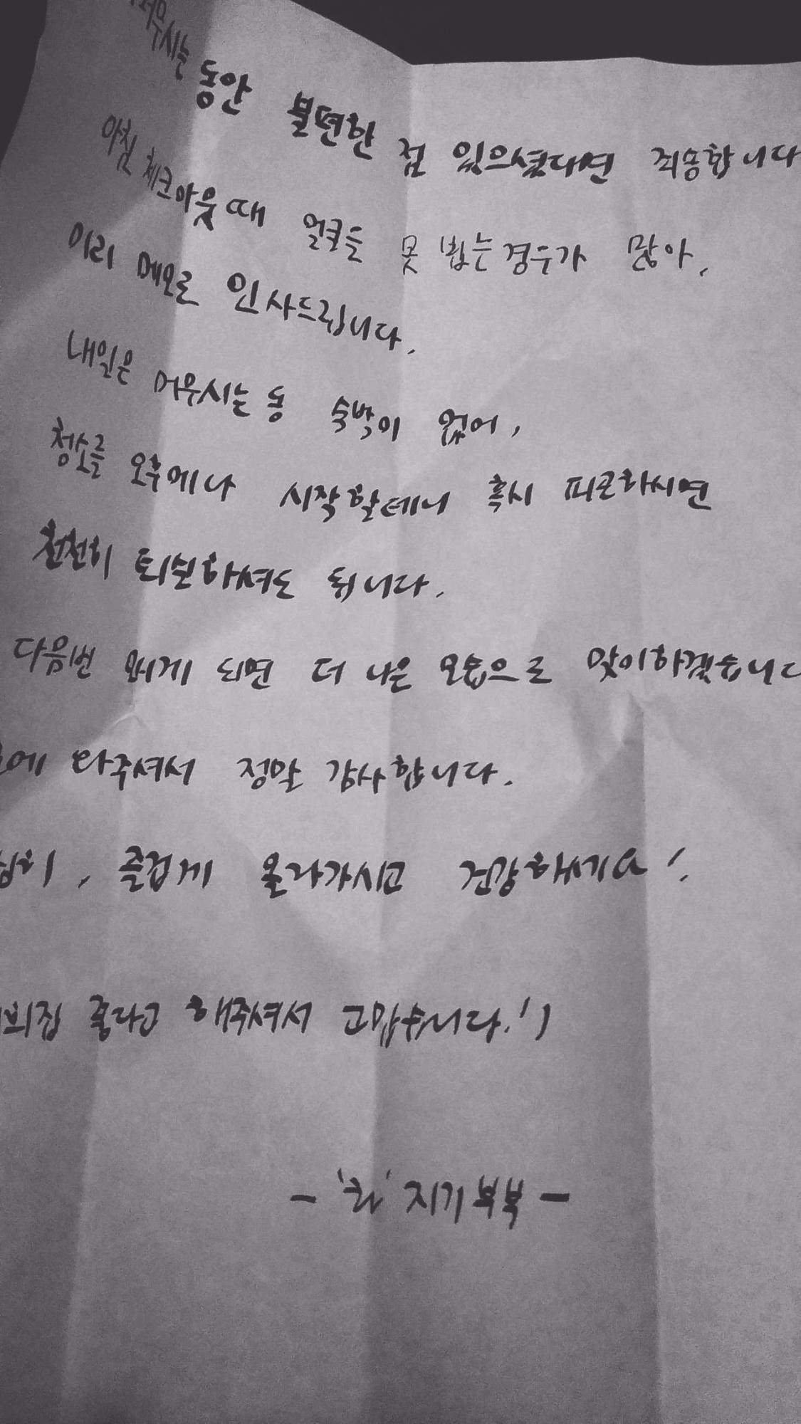 숙소로 돌아가니 집 정리를 하면서 주인이 남기고 간 손편지가 보인다. 수많은 곳을 다녀보았지만 이런 훈훈한 대접은 처음이다. 단 두개의 크라운 산도이지만 거기에는 그 이상의 것들이 들어 있어 보인다. 다시 한번 제주를 방문하는 사람들에게 이 곳을 강력히 추천한다.