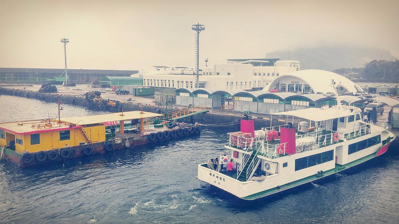 비로 인하여 어제 들어가지 못한 우도를 가기로 한다. 일기예보에서 오전 중으로 비가 그친다고 하였으나 시간이 지나도 그칠 생각을 하질 않는다. 그나마 빗줄기가 약해져서 혹시나 하는 마음으로 성산항을 향해본다. 막상 성산항에 도착하고 나니 우리들이 한 걱정들이 무색할 정도로 많은 사람들이 배편을 기다리고 있었다. 괜한 걱정을 했구나라고 생각하면서 우리도 같이 다음 배편을 기다린다.