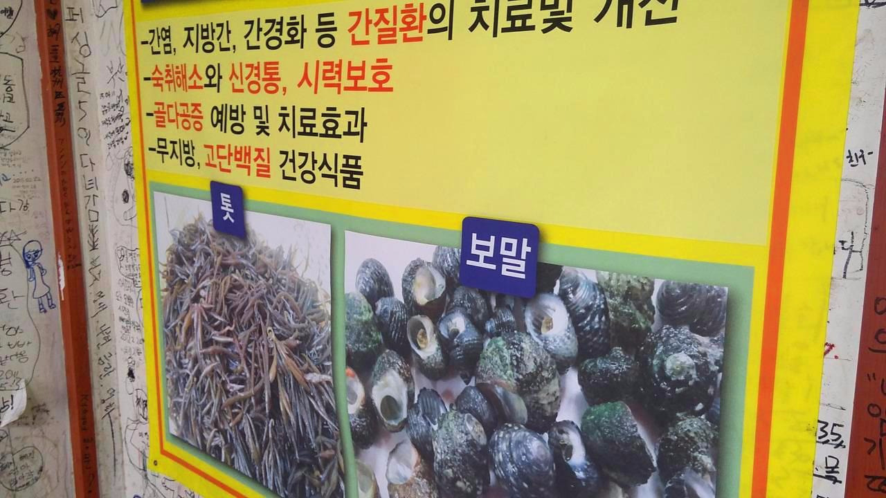 모자끼리 여행 온 모습이 신기하기도 하고 대견해 보였는지 주인은 전복을 더블로 내어오고 그 자리에서 바로 회로 내어 주기도 했다. 보말은 수요 미식회에도 나올 정도로 그 효능이 이미 잘 알려져 있으며 간 건강과 골다공증 예방과 치료에 적합한 고단백질 건강식품이라고 한다. 억지로라도 챙겨 먹어야 할 만한 음식이 아닐 수 없다. 칼국수를 다 먹은 뒤에 만들어주는 죽 또한 일품이니 반드시 먹을 배를 조금 남겨두기 바란다.