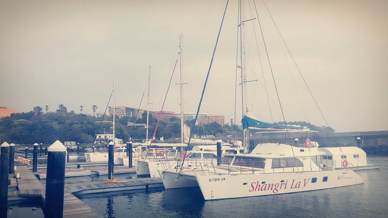회사 연수 때 마지막 일정으로 신입사원 중 몇몇을 선발하여 해외법인 친구들과 요트투어가 계획되어 있었다. 본의 아니게 한 팀의 팀장을 했던 터라 그 멤버에 속하는 행운을 누릴 수 있었다. 처음으로 타본 럭셔리 요트 투어는 매우 인상적이었으며, 즐거움 가득했던 기억이 있다. 그 기억을 바탕으로 이번 여행 마지막 루트로 요트 투어로 정하였다. 소셜 커머스를 통해서 중문 샹그리에 요트 투어 + 시푸드 뷔페 이용권 + 대형 사진인화 티켓을 끊으니 생각보다 많은 금액을 절감할 수 있었다. 우도 투어를 마친 뒤 우린 서둘러 중문으로 넘어가서 5시경에 요트에 올라탔다.