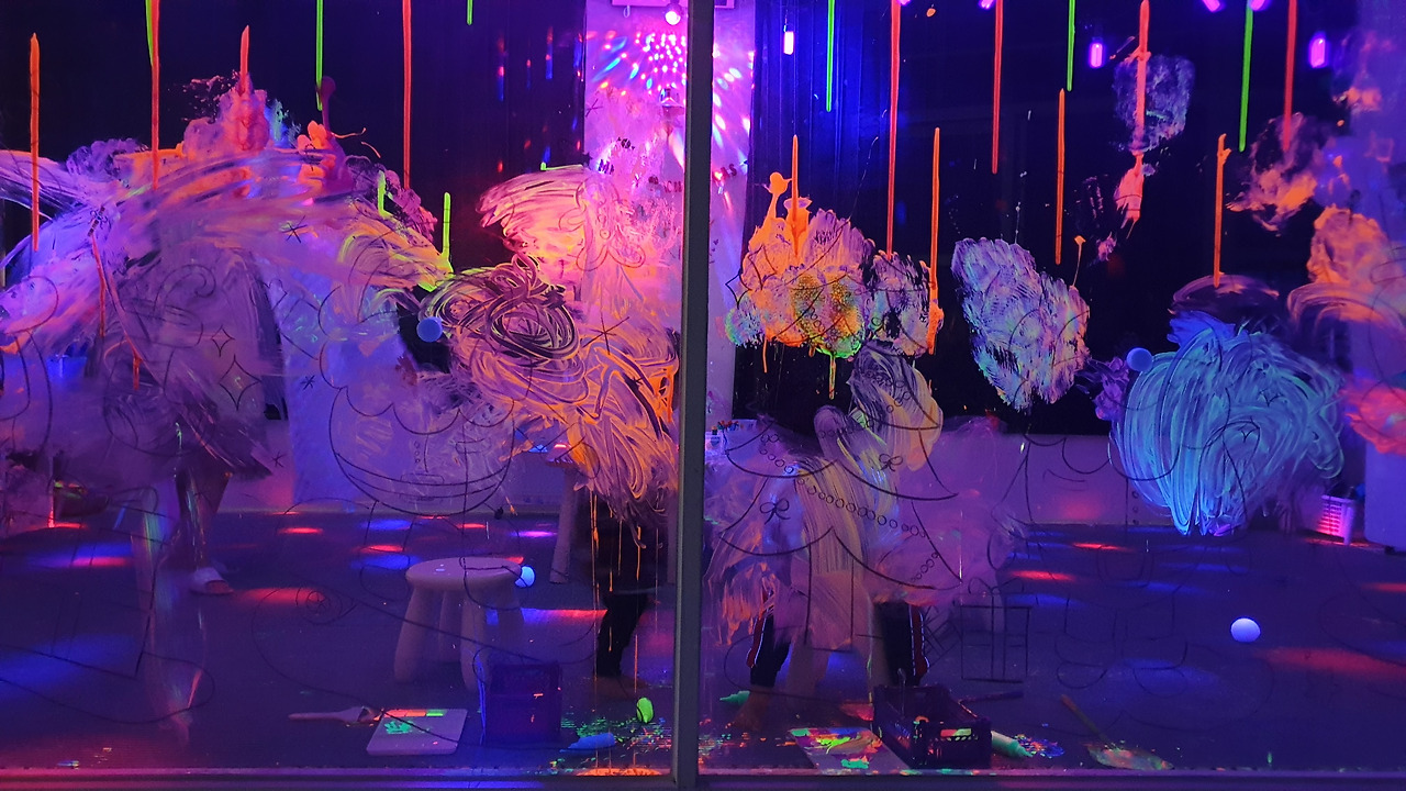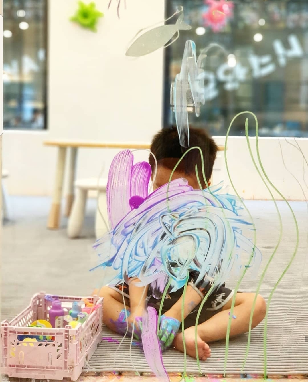 1회에 ₩19,000, 10회에 ₩150,000 정도 했던 것 같다(지금은 시세가 올랐다). 앞 뒤가 통유리로 만들어져 있으며 애들한테는 자유자재로 칠하고 지울 수 있는 스케치북이 되어준다.온몸으로 부담 없이 물감들을 이용해서 즐길 수 있으니 재미있는 모양새다.