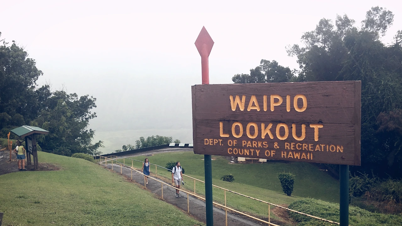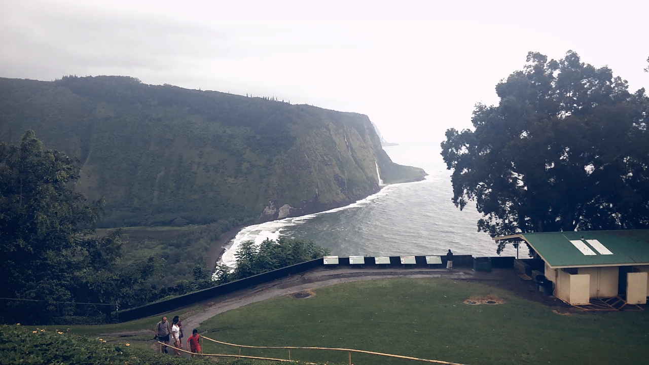 동쪽 길을 따라 한 시간 반정도 달리니 와이피오에 다다른다. 동쪽 길은 코나 코스트와는 또 다른 분위기인데 우리나라 서해안과 동해안이 다른 정도의 느낌이다. 비가와서 걱정하였으나 다행히 도착하고 조금 지나니 비가 그치더라. 이곳도 해안까지 직접 내려 갈 수 있는 길이 있으나 너무 가파르고 길도 좋지 않아서 4륜 자동차가 아니면 내려갈 수가 없다. 또한 보험 적용 예외 지역인 것으로 알고 있으니 유념해야겠다. 투어나 말을 타고 내려가는 방법은 있으나 우린 위에서 전망을 보는 것으로 만족하기로 하였다. 해안가로 내려가면 화장실 등 편의시설이 전무하다고 하니 이 또한 조심해야 하겠다.