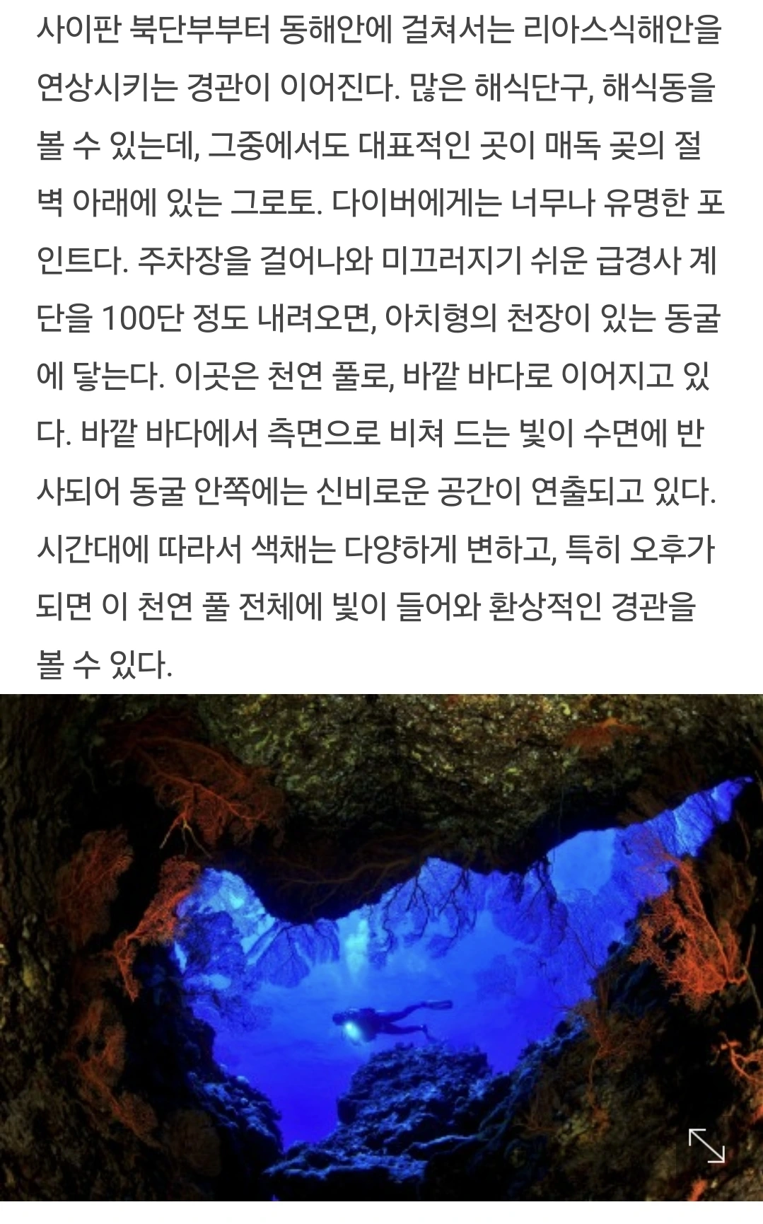 저 동굴 안으로 헤엄쳐 들어가면 정말 그림 같은 풍경들이 펼쳐진다고 하는데 코앞에 있는데도 가보지 못함에 개인적으로 너무나 아쉬웠다는