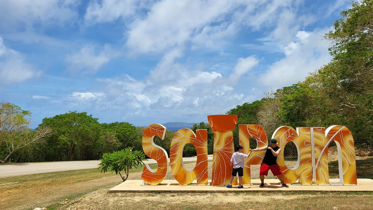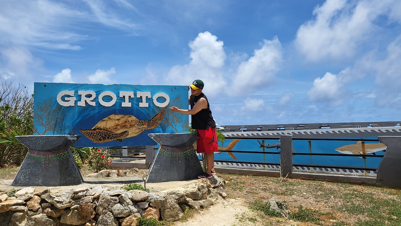 이어서 Grotto로 향하고 가는 길에는 사이판의 포토존인 Saipan 싸인이 나온다. 별거 없지만 기념사진 촬영을 위해 큰 아이랑만 내려서 포즈를 취해본다.