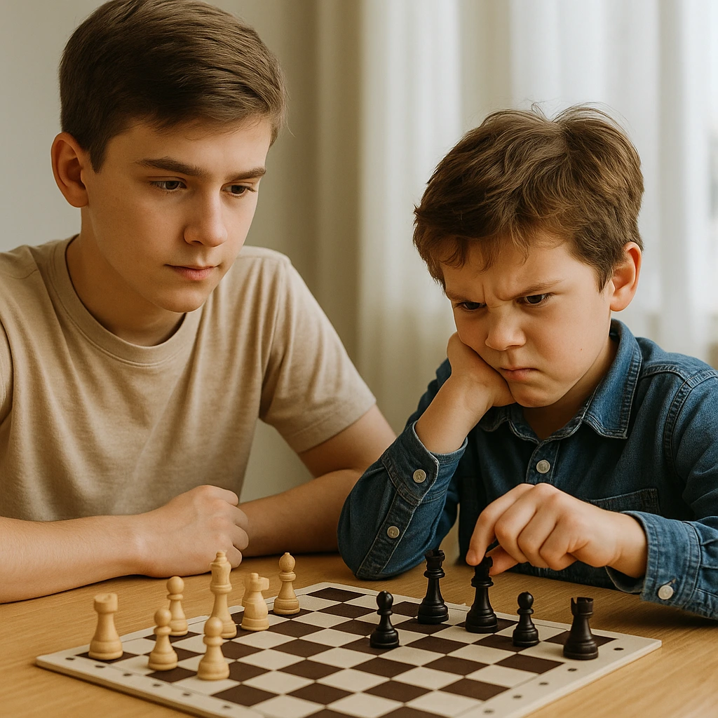 최근에 시작한 체스에서 열심히 하더니 형도 이길 정도가 되었잖아. 아직 아빠는 네게 지지 않지만, 매번 분해하는 네 모습이 귀엽기도 하고,