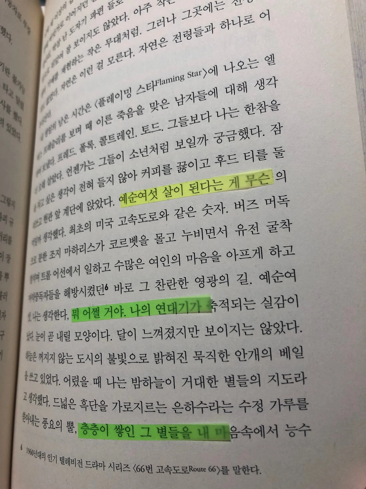 또 하나 기억에 남는 씬은 66세 생일에 나이에 대해 생각하는 부분인데요. 나이 역시 누구나 갖게 될 시간이죠. 과연 나는 어떤 예순 여섯 살을 갖게될까, 생각해봤어요. 패티는 '뭐 어쩔거야'라고 말해요. 그리고 다음 생각을 잇죠. 나는 여전히 똑같은 사람이라고. 숱한 결함도 깡마른 무릎도 그대로, 감사드릴 일이라고요. 하지만 친구의 전화를 받고 '어떤 특별한 모습의 나 자신을 한참 보지 못했다는 생각이 들었다. 열에 달뜬, 불경한 나. 그녀는 어디론가 날아가버렸다. 그건 확실했다.'고 말하지요. 나이를 먹는다는 것을 이렇게 처연하게 그리고 '아무 것도 아닌 것처럼' 받아들일 수 있을까, 싶었어요. 그리고 저 역시 66세 생일에는 '뭐 어쩔거야'를 입밖에 낼 수 있는 삶을 살아야겠다 생각했답니다.