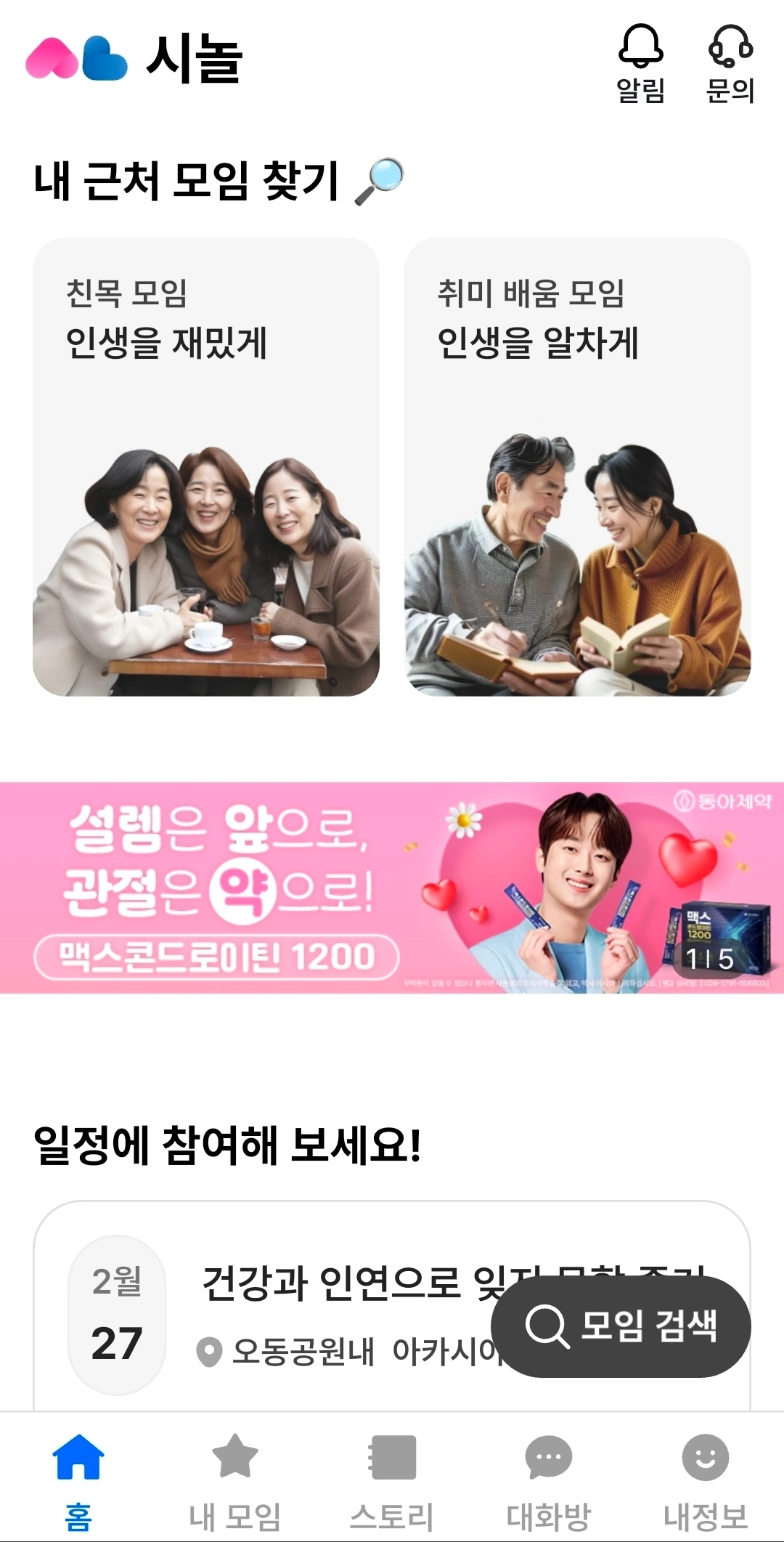 이 흐름에서 흥미롭게 보고 있는 플랫폼이 있다. '시놀'이다. 시니어 놀이터의 줄임말로, 2023년 3월 설립된 50세 이상을 위한 소셜 커뮤니티 앱이다. 2025년 기준 누적 회원 10만 명, 월평균 활성 사용자 3만 명 이상을 유지하고 있다.
