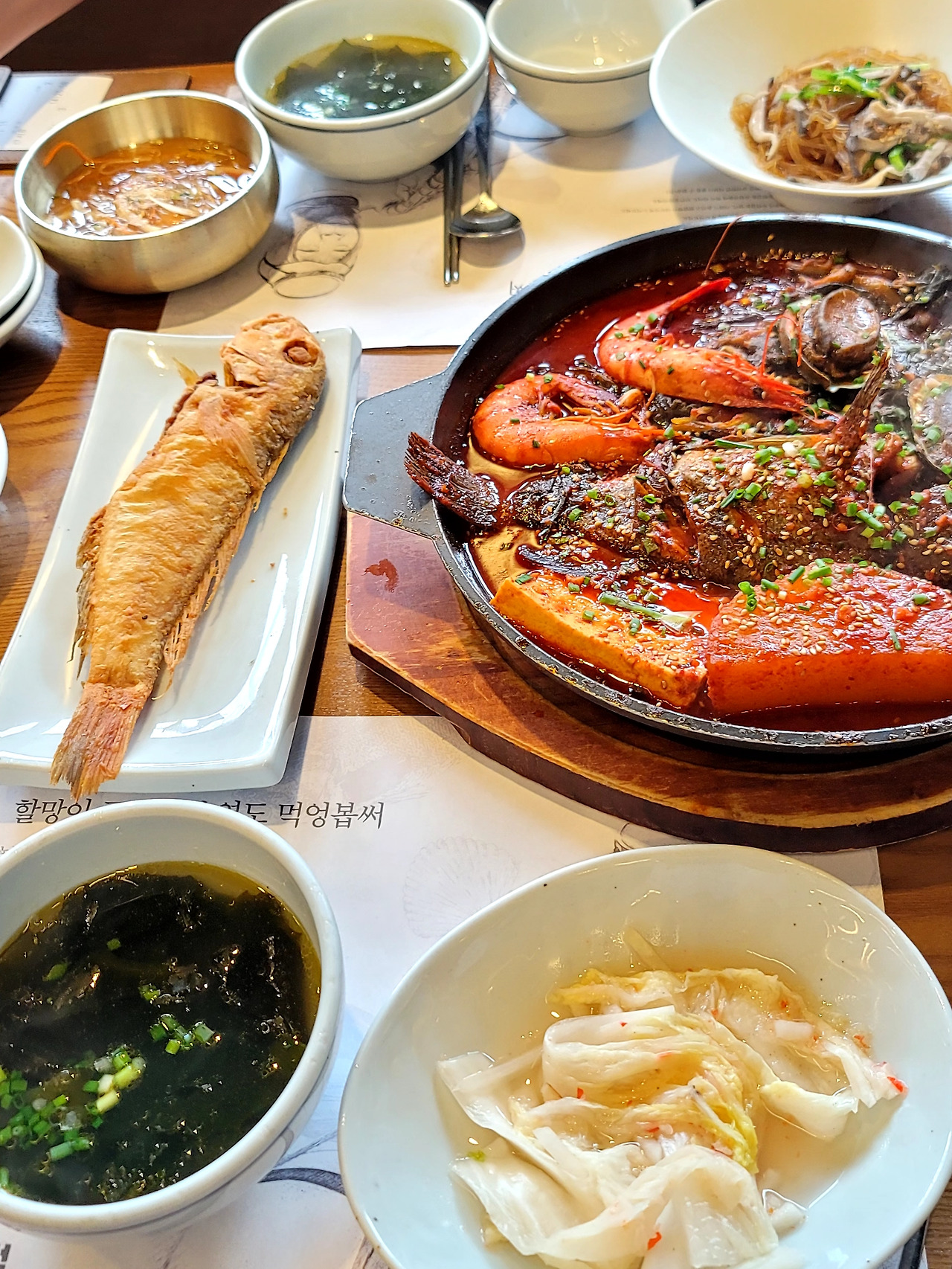 아쉬움이 남아 여행 일정 동안 유명한 식당에 딱 한 번 도전했다. 다행히 수아가 차에서 잠이 들어 1시간의 웨이팅을 평화롭게 보낼 수 있었다. 돌돔 구이와 우럭찜을 시켰는데 수아는 워낙 흰살생선을 잘 먹기도 하고 아기 밥이 서비스로 제공된 덕분에 얌전하게 식사를 했다. 음식 맛도 좋았지만 아이가 잘 먹는 모습에 신랑과 나도 마음 편히 식사를 할 수 있었다.