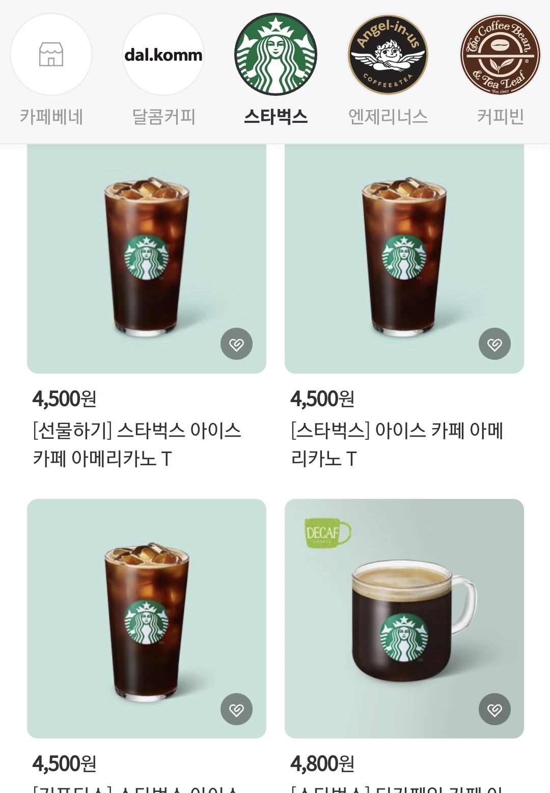 (딱 한번 우리 동네에 스타벅스가 없으니 엔제리너스 기프티콘으로 바꿀 수 없냐는 문의가 들어온 적 있다)