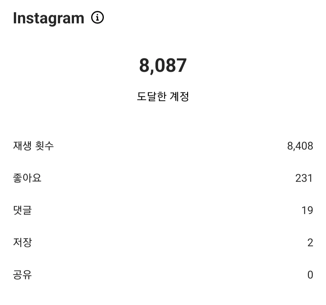 퀄리티가 높지 않아 걱정한 것에 비해 생각보다 도달이 나쁘지 않았다. 최근 하락세였던 일반 피드 콘텐츠에 비하면 꽤 괜찮은 숫자였다.