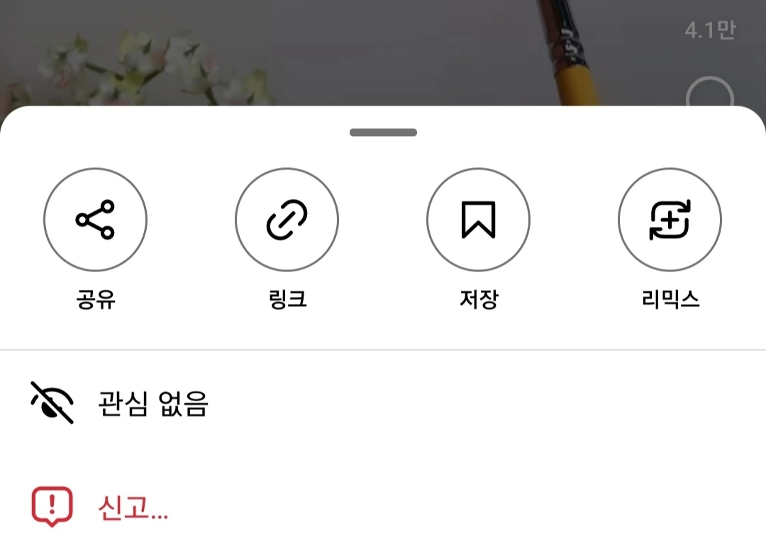 레퍼런스로 괜찮겠다 싶은 영상은 꼭 저장해두는 편이다. 오른쪽 아래의 점 3개 아이콘을 누르면 저장버튼이 나타난다. 편집 스타일, 촬영 소재 등 다양한 아이디어를 얻을 수 있다.