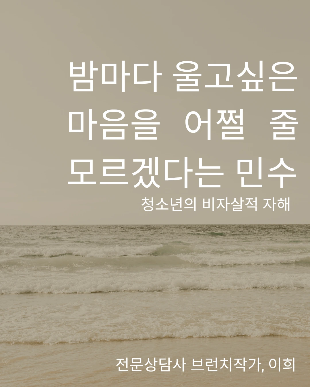 자해(Self-Injury)는 자신의 몸을 일부러 해치는 모든 행동을 말한다. 여기에는 자살을 목적으로 하는 자해와 자살 의도가 없는 비자살작 자해가 모두 포함된다. 비자살적 자해는 자살하려는 의도 없이 신체를 고의로 손상시키는 행위다. 주로 감정을 조절하거나 심리적 고통을 해소하려는 목적에서 이뤄진다. 민수는 비자살적 자해(NSSI)를 시도하고 있었던것으로 보였다.