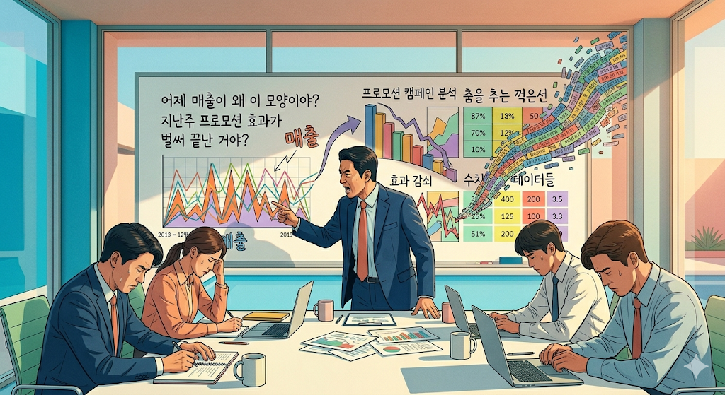 대시보드에는 화려한 꺾은선 그래프가 춤을 추고, 수치화된 데이터들이 쏟아집니다. 하지만 가만히 그 내용을 들여다보면, 그건 고객의 이야기가 아니라 철저히 '우리'의 독백에 가깝습니다. 왜냐하면, 데이터가 쌓이는 구조가 "어떤 제품을, 언제, 얼마나 팔았는가, 그래서 얼마의 이익이 남을 것이고, 남은 재고는 얼마나 되는가"를 알기 위해 만들어졌기 때문입니다. 그래서, 아무리 실시간으로 우리 제품이 팔려가는 것을 눈으로 본다고 해도, 그저 팔려가기만을 기도하는 것 밖에는 할 수 있는 게 거의 없습니다.
