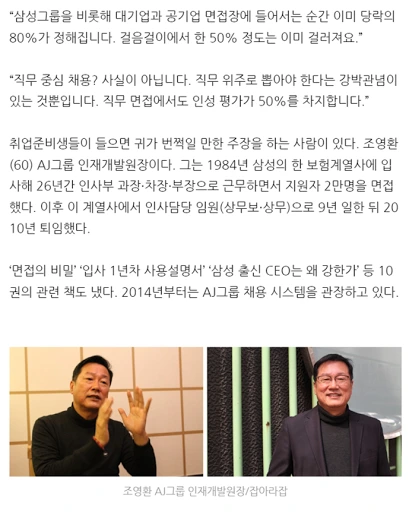 얼마 전 기사에서 S전자에서 면접관 생활을 오래 하신 분의 인터뷰 기사를 보게 되었습니다.