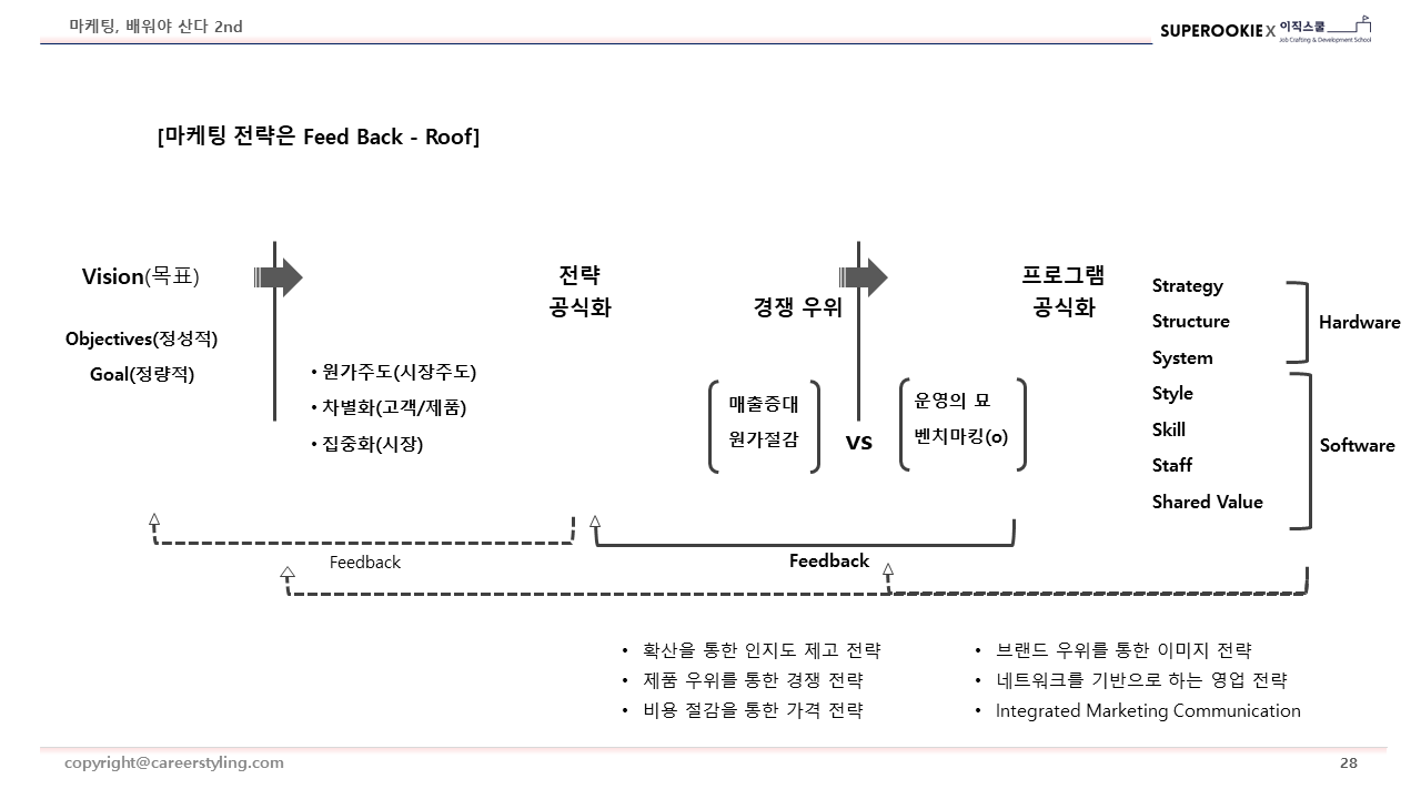 그 기반은 목적 및 목표 달성의 반복적 시도를 통해 비즈니스의 완성도를 높이는 것 이상 및 이하도 아니다. 그래서 무한대의 Feed-Back Roof인 것이다. 될 때까지, 반복된 피드백이 비즈니스의 목적 및 목표를 위한 것이고, 동의할 만한 원칙에 의한 합리적 비판이 되어야 하는 것이다. 이는 건강한 전략 실현을 위한 최선의 조건이다.