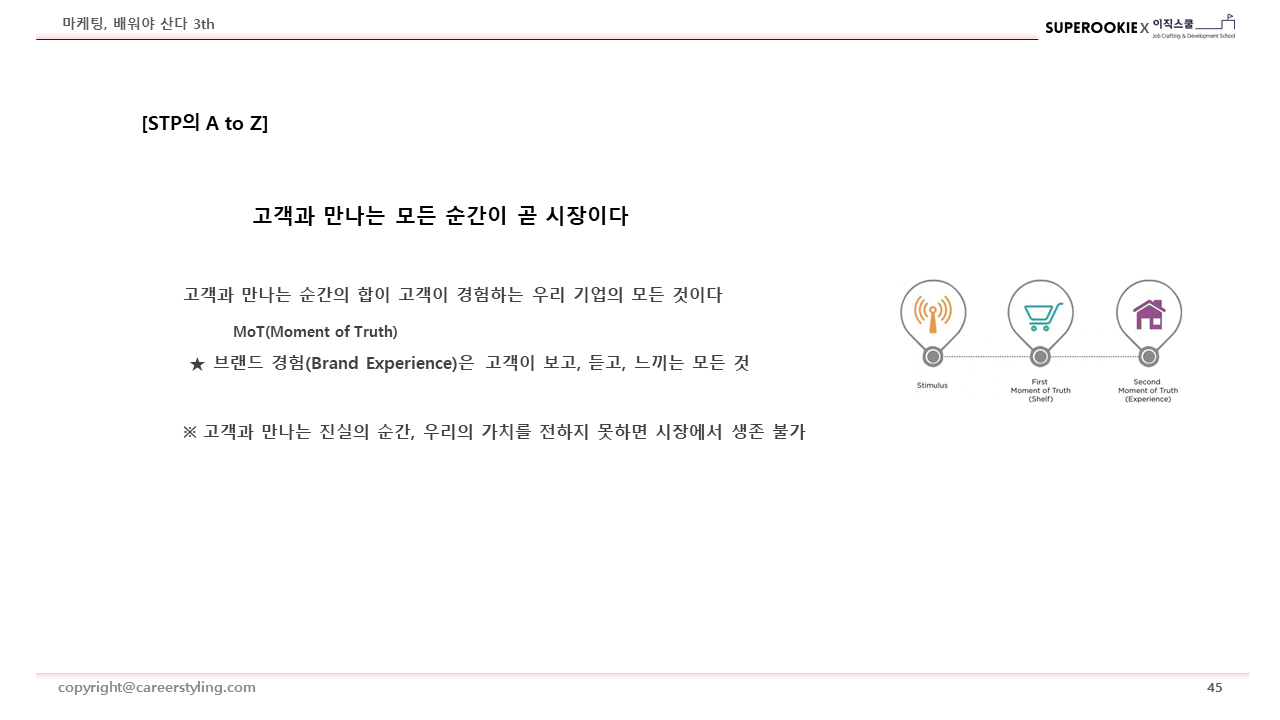 따라서, 새로운 시대의 새롭게 정의된 S-T-P를 통해 브랜드에 어울리는 고객 경험 디자인을 제공함으로써, 핵심 고객층을 최대한 끌어모으는데 전심전력을 다해야 하는 것이다. 그들은 이를 통해 자연스럽게 매출을 일으켜야 하고, 그 과정 속에서 끊임없는 고객을 향한 시도를 S-T-P를 통해 보여주는 것이다.