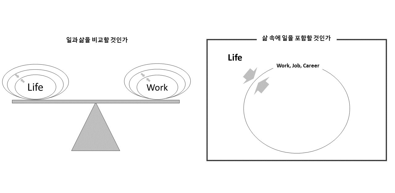 이는 삶 속에 일이 포함된다는 가정하에, 스스로가 정한 행복의 컨트롤이 가능한 범주 안에서 일과 삶 사이에 '꼭 해야 하는 활동(must do)의 꾸준함'을 확보하는 것으로 당연히 Life과 Career를 평행 선상에서 보는 것을 말한다.