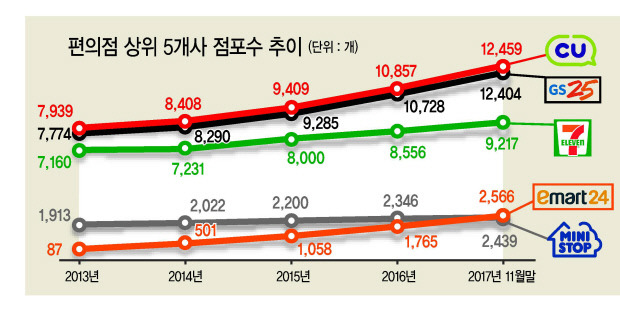 특히, 편의점 시장을 보면, 어디든 편의점을 개설할 수 있도록 법까지 바꿔가면서 점포를 늘려가는데 집중했다. 수많은 점포가 뒷받침이 되어 ① 다양한 종류의 제품 구매력을 본사가 가질 수 있고, 이를 통해 ② 제조사 및 각종 서비스를 제공하는 공급사에게 가격 후려치기도 좋고, ③ 무엇보다 경쟁 유통사 보다 더 싼 가격에 고객에게 제공할 수 있어 점포수 늘리기에 앞다투어 경쟁을 한 것이다. (**애초에 프랜차이즈업이 점포 개설에 따른 수익이 발생되기 때문에 점포 개설 관련 법안을 바꾸었는지도 모르겠다.)