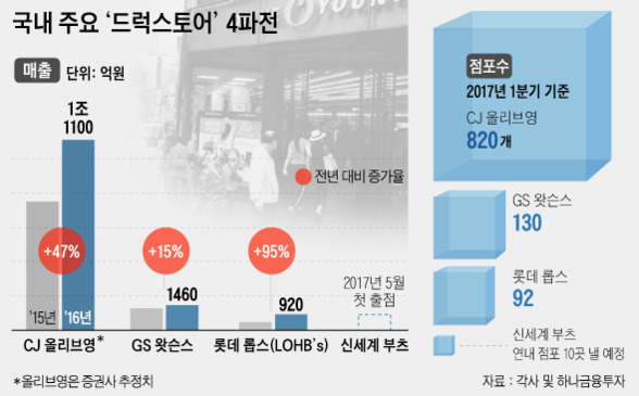 이는 더 많은 화장품 브랜드를 수용 가능한 중대형 매장에 오밀조밀하게 채워 넣어 화장품 쇼핑, 특히 여성 중심 상품의 쇼핑 편의성을 극대화한 전략을 취했다. 이제는 '화장품 살 때는 드럭스토어'라고 느낄 만큼 기존 쇼핑 패턴을 대체하고 있고, 엄청나게 늘어난 작지만 좋은 브랜드에게 새로운 판매처로 급부상했다.
