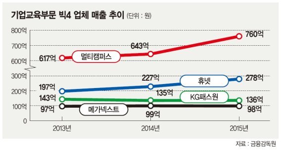 과거 성인 교육 시장은 대부분 '언어 교육' 중심으로 구성되어 있었다. 수출로 먹고살았던 나라인 만큼 다양한 국가들과 원활한 거래를 위해 영어를 선두로 일어, 중국어, 불어 등을 배우려는 어른들이 시간을 가리지 않고 나타났다. 또한 기업들의 과도한 요구 덕분이기도 했다.