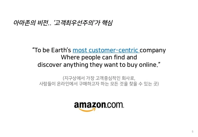 사람들이 필요로 하는 모든 것을 오프라인이 아닌 온라인에서 안심하고 구매할 수 있도록 했다.(아마존)