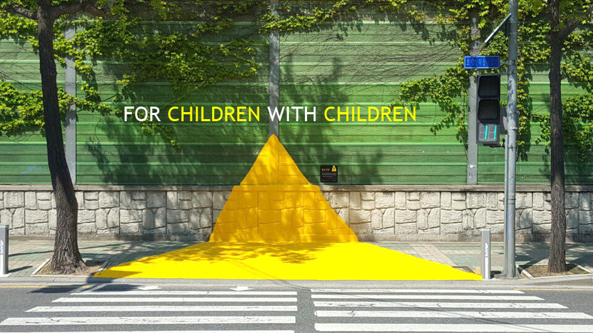 생각보다 우리 주위에는 '행동 디자인'을 통해 문제를 해결하는 경우가 많다. 위 그림과 같이 '늦은 밤에도 볼 수 있는 '야광 페인트로 Yellow Kids Zone'을 학교 주변 횡단 보도에 칠하여, 운전자들의 시야 확보를 통해 안전 운전을 촉구 할 수 있었다.