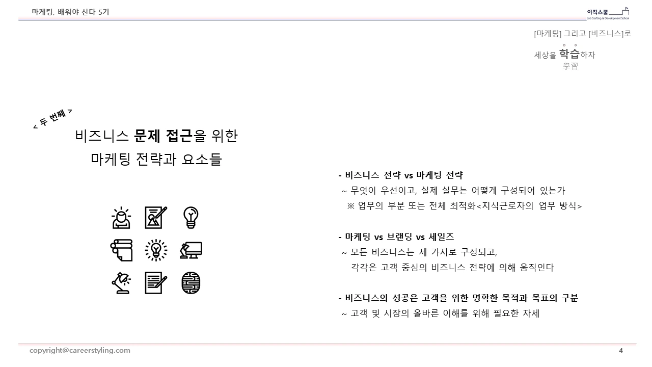 또는 마케팅을 제대로 배우고자 하는 분들을 위해 개설된 4주간의 마케팅ㆍ비즈니스 수업입니다