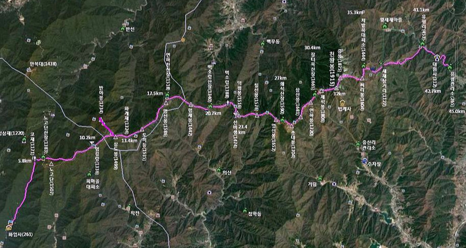 물론 지리산은 호락호락하게 나를 보내지는 않았다. 천왕봉 다음에도 중봉(1,875m)과 써리봉(1,604m) 등 가파른 경사의 봉우리를 넘나들어야 했고, 이후 지루하게 이어지는 화강암 돌길은 발과 다리를 고통스럽게 했다. 잠도 없이 10시간을 달리고 나니 당장이라도 쓰러질 것 같았고, 집중력이 떨어지면서 종종 위험하게 비틀거리기도 했다. 중간쯤 하산했을 때는 길이 계곡 옆으로 나있어서 그런지 물에 젖은 바위가 매우 거슬렸다. 또 이런 바위만 계속 밟고 내려오다 보니, 온몸을 울리는 충격에 머리가 아플 정도였다. 히말라야와 알프스를 겪은 나였지만 끝없이 이어지는 지리산의 돌길에는 정말 혀를 내둘렀던 것 같다. 심지어 하산길이 노고단 가는 오르막길처럼 내리막길 일색이었기 때문에 서서히 무릎 부상이 걱정되기 시작했다. 결국 앞으로의 훈련에 지장을 줄 수 있겠다고 판단, 그냥 걷기 시작했다. 이 때문에 치밭목 대피소(1,444m)를 지나 대원사(약 300m)까지 1,100m를 내려가는 동안 거의 50명 넘게 나를 앞질러 가고 말았다. 하지만 레이스는 자기 자신과의 싸움. 나에게는 사막마라톤이라는 더 큰 목표가 있는 만큼, 다른 선수와의 쓸데없는 경쟁은 피해야만 했다. 발 디딜 스텝을 찾느라 눈까지 아플 정도였던 지루한 내리막길은 3시간 넘게 이어졌다. 제한시간을 30분 정도 남긴 오후 3시 반, 나는 결승선을 통과해 13시간 30분에 달하는 긴 마라톤을 마칠 수 있었다.