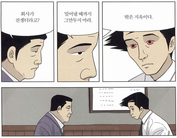 그리고 2년 동안 최선을 다해 일 했다. 정말 열심히 일했기 때문에, 같은 직장에 있었던 그 누구에게도 당당할 수 있다고 자부한다. 나는 '성실한 신입직원'이었다. 맡은 일을 '요구된 기한 안에 완벽하게 끝내는 것'은 나의 철칙이자 성향이기도 했다. 이를 위해서 거의 매일 야근을 했으며, 출퇴근뿐만 아니라 아침에 눈을 떠서 밤에 눈을 감는 순간까지 업무 생각만 했다. 생각했던 것보다 업무량이 훨씬 많았던 것이 사실이다. 적성에 그다지 맞지 않는다는 것도 알게 되었다. 그래도 맡은 일에 대해서는 모든 에너지를 퍼부어 최고의 결과물을 만들고 싶었다. 다른 많은 사람들도 그렇게 했겠지만, 나는 내가 원래 들어가고 싶었던 직장이었기 때문에 더욱 불타올랐었다. 그리고 이렇게 열정적으로 일하는 내 모습이, 꽤나 멋져 보일 때도 있었다. 취직 준비할 때 봤던 웹툰 <미생>의 '오 과장'처럼 말이다. 물론 힘들었다. 대기업에 다니는 친구조차 너무 심한 거 아니냐고 얼굴을 찌푸릴 정도로. 나와 달리 그는 야근수당이라도 받는다는 사실에 속상함을 숨기기 어려웠지만, 나는 하고 싶은 일을 하는 거니까 이 정도 고생은 괜찮다고 생각했다. 그렇게 아무 생각 없이 1년을 몸이 부서져라 일 했다.