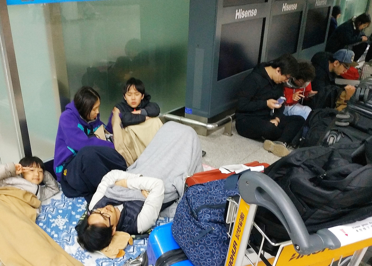 "이번에도 공항 의자에서 밤새야 하는 거야?"